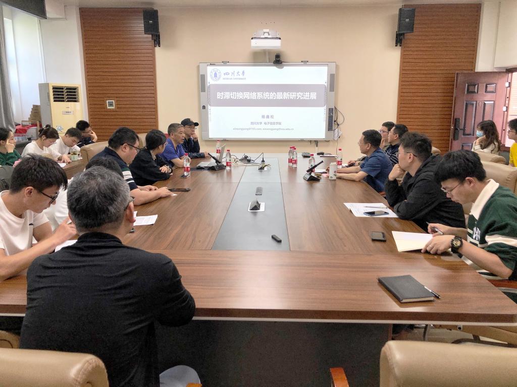 讲座中,杨鑫松简要介绍了时滞切换网络系统的研究背景,根据现有切换方法存在的问题,从TP-based MDADT切换、驻留时间分割技术两个方面,重点介绍了时滞切换网络系统的最新研究进展,以及带领科研团队所做的开创性工作。