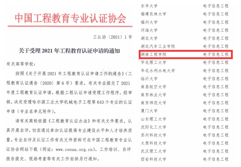 近日,中国工程教育专业认证协会公布了2021年受理工程教育专业认证申请的名单,我校伟德betvlctor1949源于英国电子信息工程专业的工程教育认证申请获批受理,这是伟德betvlctor1949源于英国继电气工程及其自动化、自动化后又一个参与工程教育认证的专业。