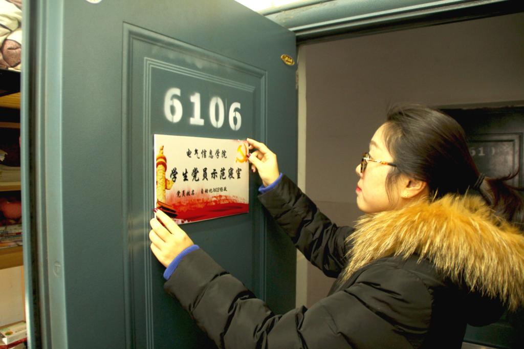 活动内容分为党员模范带头——寝室挂牌,党员示范引领——干部督查两部分。为了充分发挥大学生党员在日常学习生活中的模范带头作用,开展“党员寝室”挂牌及创建“党员示范寝室”活动,赵玲令老师对于党员寝室挂牌活动发表了讲话,以周宁莎老师为代表为优秀党员进行挂牌,号召全体学生党员“从我做起、向我看齐、对我监督”,以党员的先锋模范作用带动寝室的文明进步,真正使学生寝室成为健康文明向上的学习生活场所。