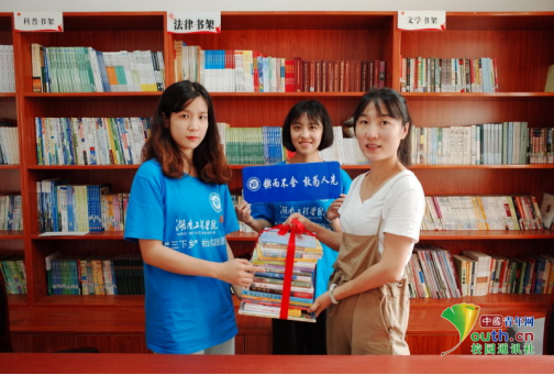 实践团向社区图书角捐赠儿童读物。中国青年网通讯员 严立波 摄