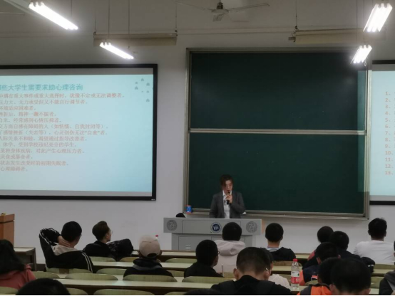 在针对大三和大四同学的讲座中,张露馨向他们介绍了六类重点关注对象以及容易出现心理状况的时期,特别是提醒大家要合理调整心态,积极面对就业。在面向大一、大二同学的讲座中,张露馨讲述了大学期间应该如何规划自己的大学生活,以及如何正确应对对大学生活中可能会遇到的各种心理状况,她还向同学们介绍了我校心理健康中心的联系方式以及值班时间,希望大家在面临心理问题时,能够主动寻求帮助,使问题得到妥善合理地解决。