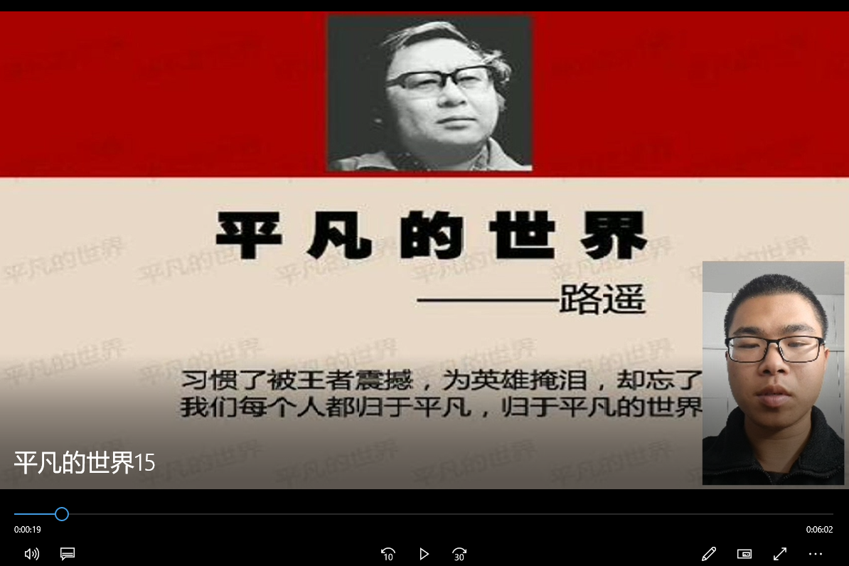 电信2004班吴诗雅选择的是路遥先生的作品——《平凡的世界》,一本令邓小平先生都爱不释手的书,该书以孙少安和孙少平两兄弟为中心,刻画了当时社会各阶层众多普通人的形象,深刻地展示了普通人在大时代历史进程中所走过的艰难曲折的道路。