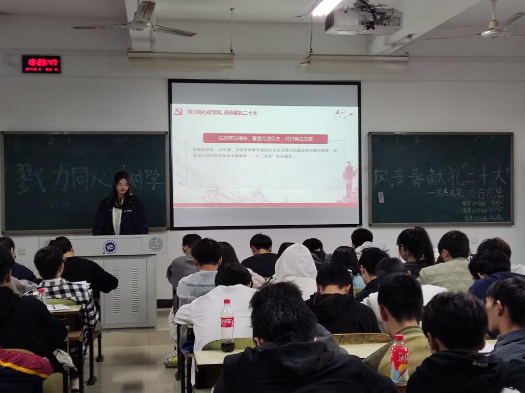 为进一步加强学风建设,调动同学们的学习积极性,增强节约意识、弘扬宪法精神、树立文明礼仪之风,11月19日晚上,伟德betvlctor1949源于英国各班召开主题班会,围绕学习宣传党的二十大精神这一主线,以学习“节粮、节水、节电”、“学宪法、讲宪法”和“文明礼仪伴我行”三部分为主要内容。各班认真准备,开展了丰富多彩的活动。