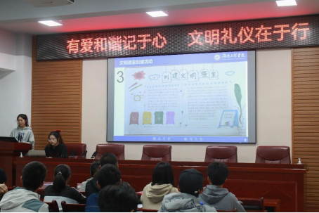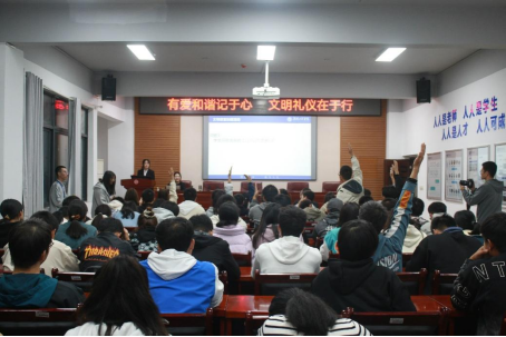 在有奖竞答环节,题目分为寝室管理类、文明礼仪类两类问题,“室友之间产生矛盾应如何解决”“如何践行垃圾分类”“如何创建文明寝室”同学们积极踊跃举手回答问题,发表自己对寝室文明礼仪的理解和看法。