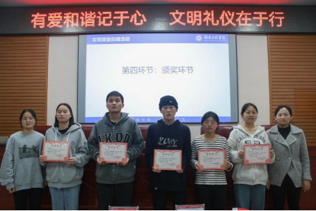 在前期的院级文明寝室评选中,结合寝室内务现场打分及本学期日常工作四项检查结果进行评定,按总分从高到低评选出36间院级文明寝室。学办老师对手抄报获奖者及院级文明寝室获得者依次进行颁奖。