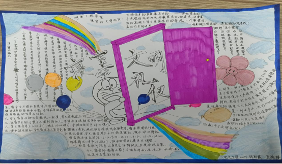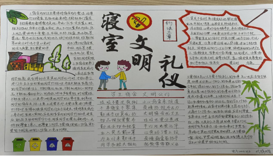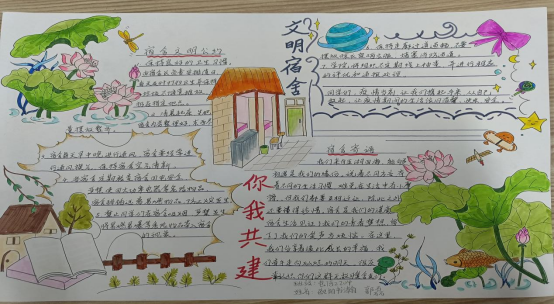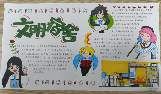 在手抄报评选环节,活动组委会从投稿的35份作品中初选出14副优秀作品,在活动现场由选手逐一介绍。手抄报设计者们从主题色的选取、各个图画元素象征的寓意、文字内容及边框底纹设计等角度阐述自己对寝室文明礼仪的理解和对寝室生活的感悟;以或斑斓或素朴的画面勾勒出寝室的温馨氛围。参会人员对手抄报作品进行现场投票,评选出特等奖1名、一等奖1名、二等奖3名、三等奖9名。
