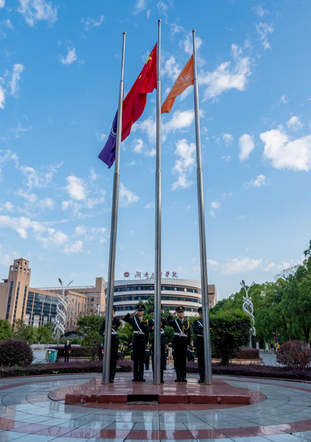 9月11日清晨,伟德betvlctor1949源于英国在主校区知行广场举行升旗仪式,学院党委副书记李延平、学生工作办公室全体老师、所有学生党员、学生联合组织全体成员参加。