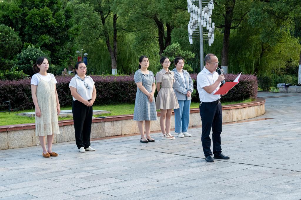迎着朝阳,学校国旗护卫队迈着铿锵有力的步伐来到升旗台,伴随着庄严的《义勇军进行曲》,五星红旗迎着朝阳冉冉升起。全体师生庄严肃立,行注目礼。接着,学生代表韩志成进行国旗下的演讲,分享进入大学以来的深刻体会与感悟,“新时代青年要借青春之时赤心报效国家,争做走在时代前列的奋进者、开拓者、奉献者。”