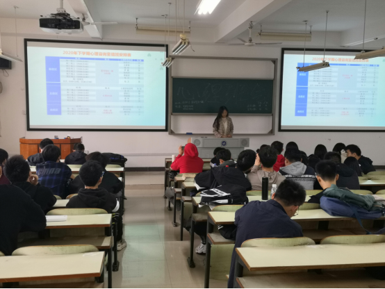 在班会上,心理委员把学校心理健康中心老师的联络方式以及值班安排表告知广大同学,以方便同学们在需要心理咨询的时候,快速及时地找到值班老师。同时,还将各种可能出现心理异常的时间段一一列出,方便同学们及时调整自己的心态,从而尽可能地避免出现心理健康问题。针对2020级新同学,在班会上还发放了印有心理健康中心联系方式的书签。最后,在心理委员宣读完心理健康中心给大一新生的一封信后,心理班会圆满结束。