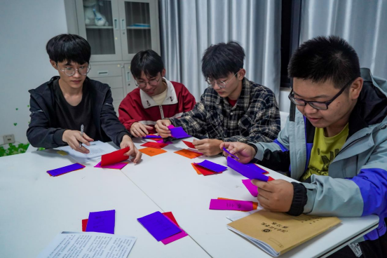 重温红色经典环节,团支部设计了有关党史团史内容的卡片,支部团员将人物、时间、事件进行组合,拼出一个个红色故事,大家沉浸式地重温那一段段峥嵘岁月。团员刘康杰说道:“我拼得最快的是1919年五四运动,我们作为新时代的青年要传承爱国精神,用自己的本领和才华为祖国做出贡献。”