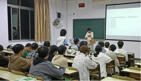 班会上,主讲人带领同学们学习《本科教育教学审核评估手册》,介绍了此次本科教育教学审核评估工作开展的目的、重要性,引导大家全面了解评估知识,帮助同学们深刻认识到迎评工作的重大意义,鼓励大家用实际行动助力学校发展,让同学们树立“校兴我荣、校荣我幸”的意识,以良好的精神风貌、严谨的学习态度和文明的行为举止迎接评估,为学校以及自身更好的发展贡献一份力量。随后发布易班《本科教育教学审核评估知识答题》活动,通过答题形式促进学生深入了解和熟悉评估工作,理解与掌握评估的规范要求。