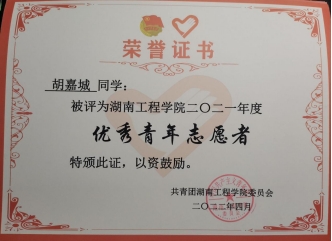 2022年4月 被评为优秀青年志愿者