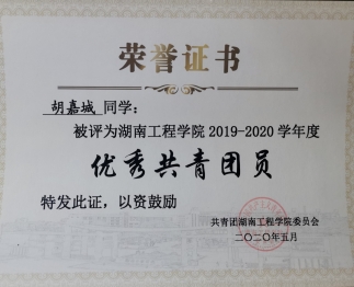 2020年5月 被评为优秀共青团员