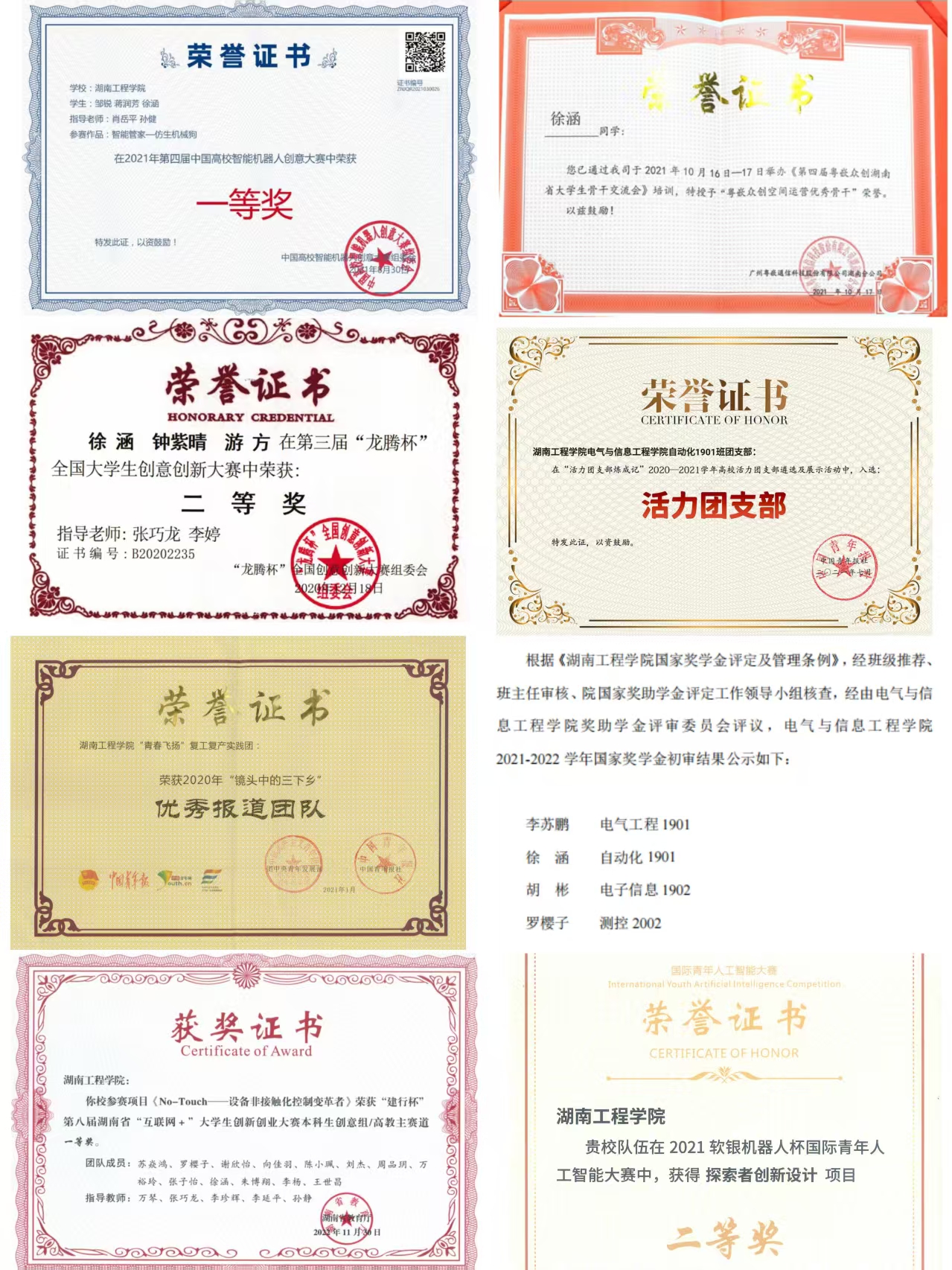 作为自动化1901班学习委员,徐涵始终秉持“以身作则、示范引领”的原则,在扎实提升自身学业的同时,积极协助老师推进班级教学工作,成为师生间的“桥梁纽带”。谈及学习方法,他分享道:“课堂专注听讲是基础,课后及时复盘才是巩固提升的关键。每节课后,我都会预留专门时间消化知识点,遇到疑难问题第一时间钻研解决,绝不拖延。”面对日常干扰,他有着自己的高效秘诀:“只要开启学习或工作模式,我就会切断手机非必要软件的网络连接,主动屏蔽外界干扰,让自己完全沉浸其中,这是提升效率最直接有效的方式。”科研探索早已成为徐涵生活的重要组成部分,但回望初入实验室的第一次竞赛经历,仍让他记忆犹新。彼时,他与团队成员全力以赴投入备战,却因疏忽了细节核查,最终未能取得理想成绩。这次经历让他深刻领悟到“细节决定成败”的真谛,也在他心中埋下了“严谨治学”的种子。他感慨道:“过去无法回溯,唯有在每一次科研攻关、每一场赛事比拼中,时刻绷紧‘细心’这根弦,反复核查、精益求精,才能不辜负付出,抵达理想的彼岸。”这份严谨务实的态度,也成为他后续科研道路上不断突破的核心动力。