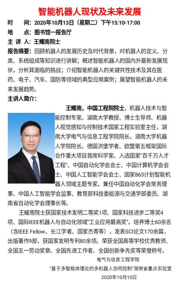 创新讲座-智能机器人现状及未来发展(王耀南,中国工程院院士)