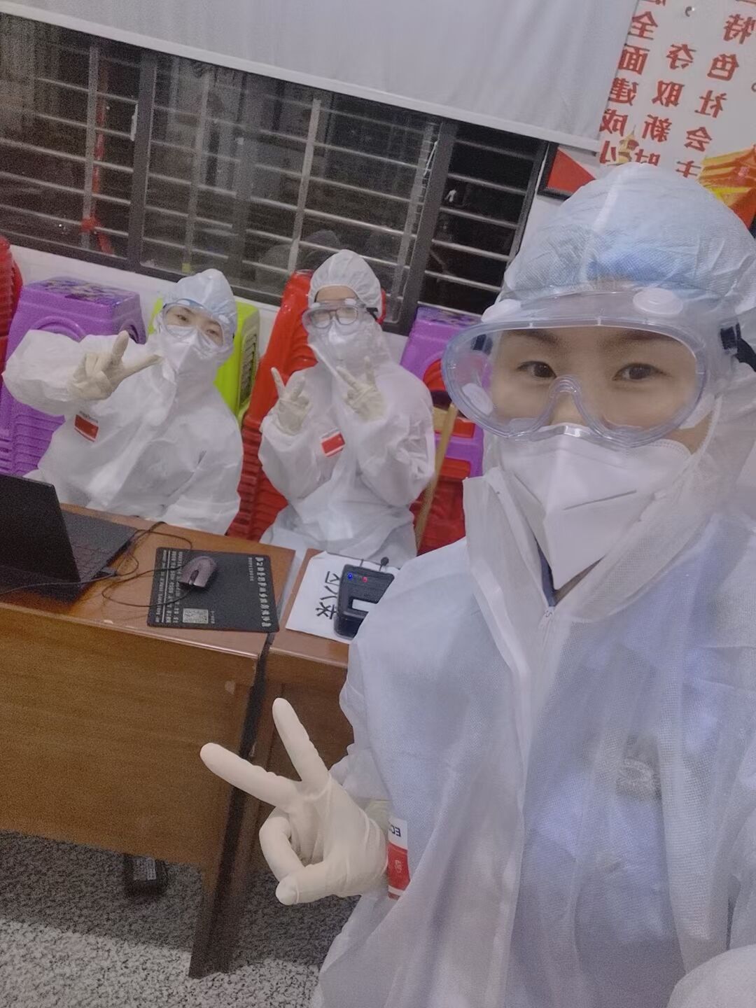 电子信息工程1803班的张淑萍,家在湖南省张家界市慈利县。在继张家界出现新冠肺炎确诊病例后,慈利县发现了密切接触者,为防止疫情扩散,慈利县广福桥社区发出了防控疫情志愿者的招募信息,张淑萍毫不犹豫地成为了抗疫志愿者的一员,劝阻人口聚集和随意流动、帮助社区做好集体核酸检测工作。“我们这里的农村,大多数是留守老人和儿童,有许多行动不便的老人不能来集中检测点,我会跟随医生去居民家里做核酸检测工作,当我穿上志愿者防护服,心中是对抗疫工作满满的敬畏感,我觉得自己是在做一非常有意义的事情,我会一直坚持这份热情。”