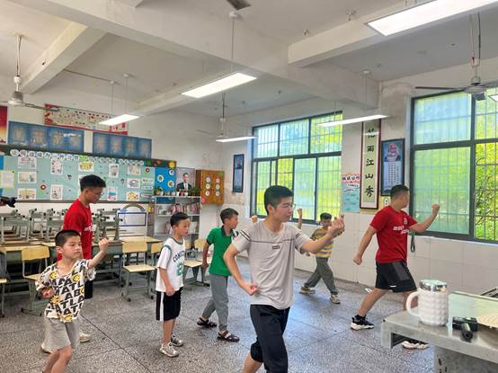 退役大学生士兵、新能源1901班的罗康威带领小朋友们现场演练军体拳,一招一式,颇有威风。作为一名退役大学生士兵,罗康威还给小朋友们分享了自己的入伍经历和军旅生活,“孩子们表现出极大的兴趣,有个7岁的男孩说学会了就可以回家打拳给妈妈看,并且以后要用拳头来保家卫国,当时我心头一暖,感觉自己做了一件非常意义的事情。”罗康威表示。他希望小朋友们学会队列和擒敌拳,从小开始培养参军入伍和保家卫国的信念。