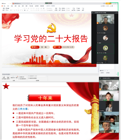 为深入学习贯彻党的二十大精神,营造学习党的二十大精神的浓厚氛围,10月29~30日,伟德betvlctor1949源于英国学生党支部全体党员通过线上线下结合的方式开展“学习党的二十大报告”主题学习活动,活动由学生支部书记贺梅主持。