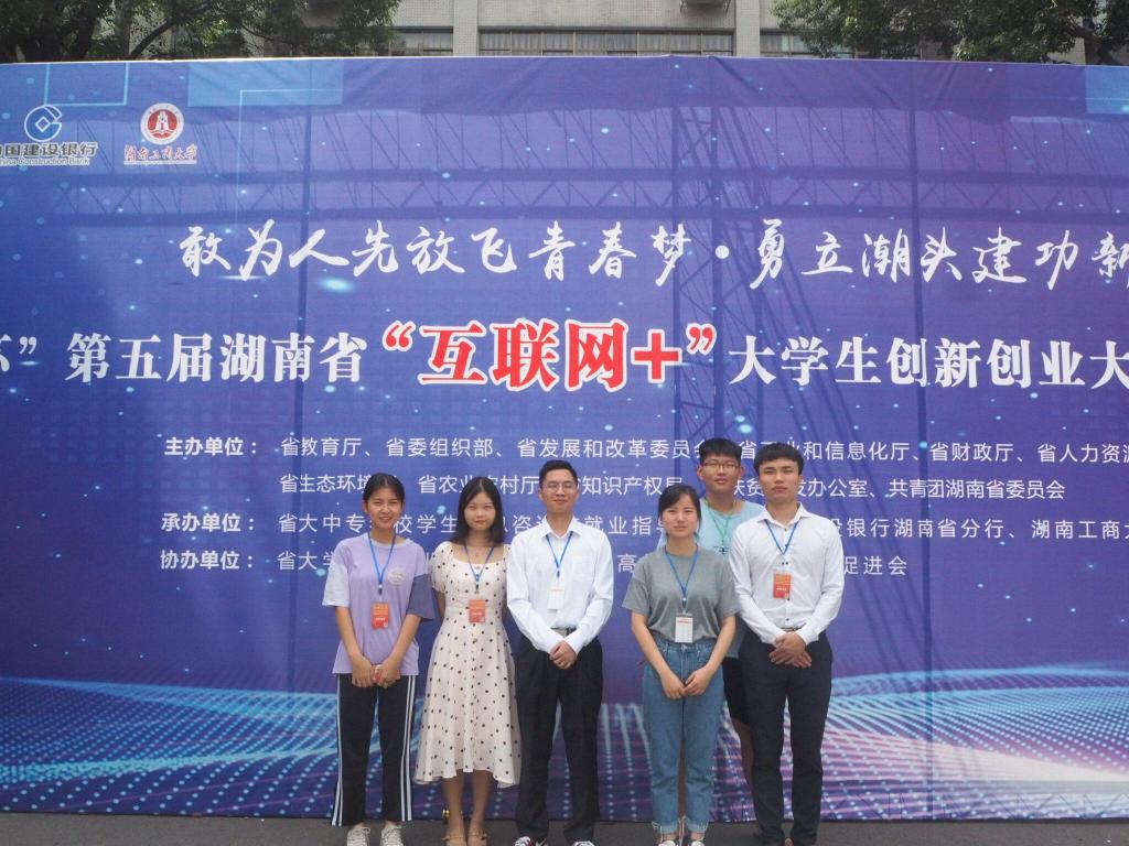 8月25~27日,“建行杯”第五届湖南省“互联网+”大学生创新创业大赛暨全国选拔赛在湖南工商大学举行。经过激烈角逐,我院参赛的两个团队获得三等奖,分别是《鲲鹏无人机-掌握创新性技术的植保无人机公司》(成员:唐志鹏,于泓华,吴朋,欧力源,李一凡,指导老师:李延平、刘喜梅)和《湖南心护智能科技公司》(成员:张巧龙、韩宗霖、伍昭媛、王滢漳、黄蓉,指导老师:李延平、赵玲令)