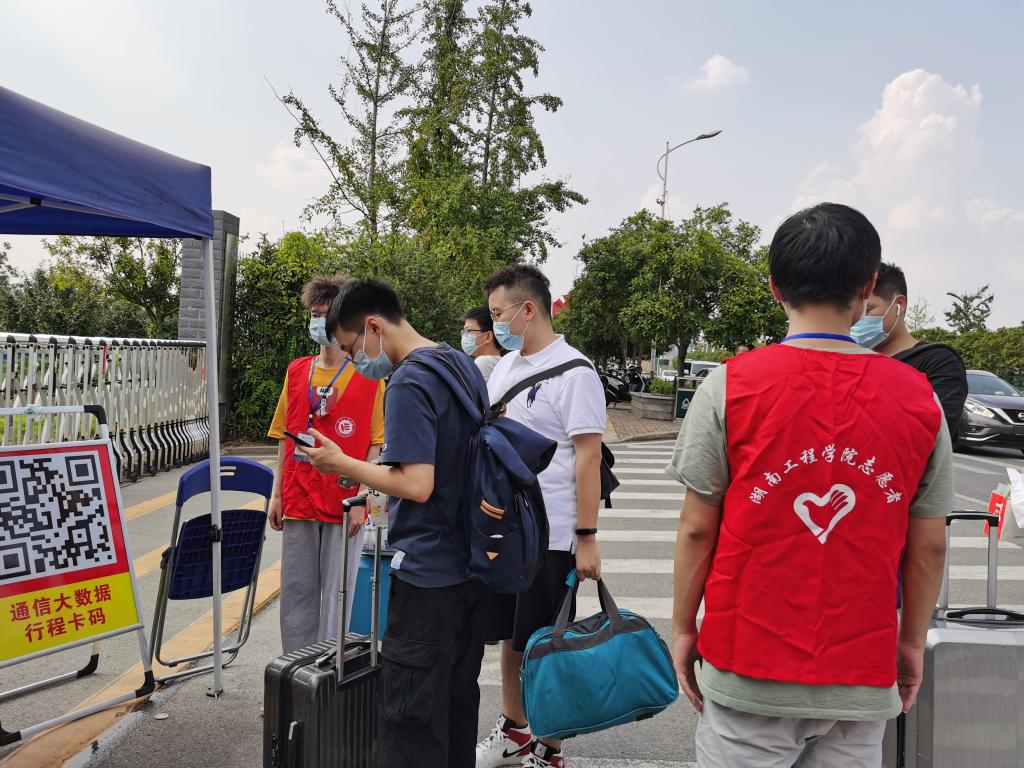 同学,请出示一下你的返校通知单,并在这里扫码”,“同学,行李这么多,我来帮你送进寝室吧”,经过培训的志愿者们立即投入到紧张有序的工作中,贴心周到地为返校生提供力所能及的帮助和服务,积极引导返校生有序排队、耐心提示学生扫健康码和行程码、核对返校通知单、做好学生临时出校登记、帮助搬运行李等等