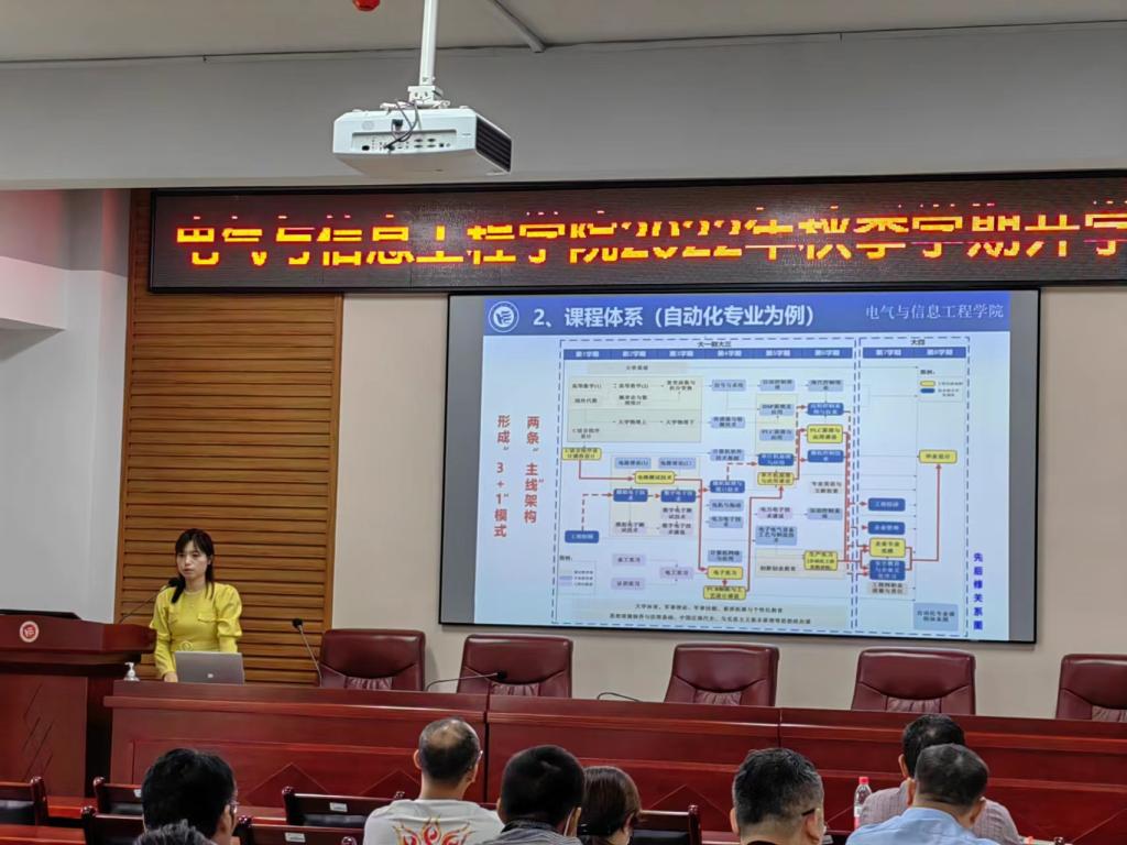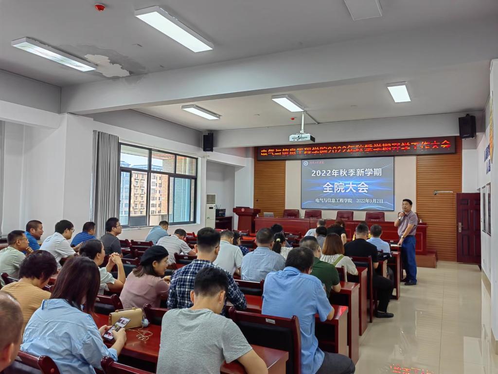 院长万琴指出,在全院教职工的共同努力下,学院各项工作在暑期有条不紊地向前推进。自动化自评报告于7月19日提交最终版,8月份通过认证协会评审,并已下发批文将于今年11月20-22日入校考察;电子信息专业认证自评报告(第一版)已于8月10日完成提交;学院分专业多次召开2022版人才培养方案修订会,对培养方案进行修订完善;控制学科和电气工程学科于8月份完成省教育厅的验收。万琴对本学期的重点工作进行了布置,并强调,由湖南大学和我校协办的中国图象图形大会青年科学家会议将于9月召开,此外还有“科创中国”机器视觉企业行、“全国科普日”大会等一系列活动,希望广大教职工踊跃参加。随后,万琴还作了《面向产业、校企融合,培养大电类应用型卓越工程人才》的主题报告,号召广大教师努力打造“金课”,矢志成为“金师”,为一流学科专业建设和卓越工程人才培养做出自己的贡献。其他班子成员分别就各自分管工作进行了汇报,对本学期即将开展的工作进行了展望,并做了统筹安排。
