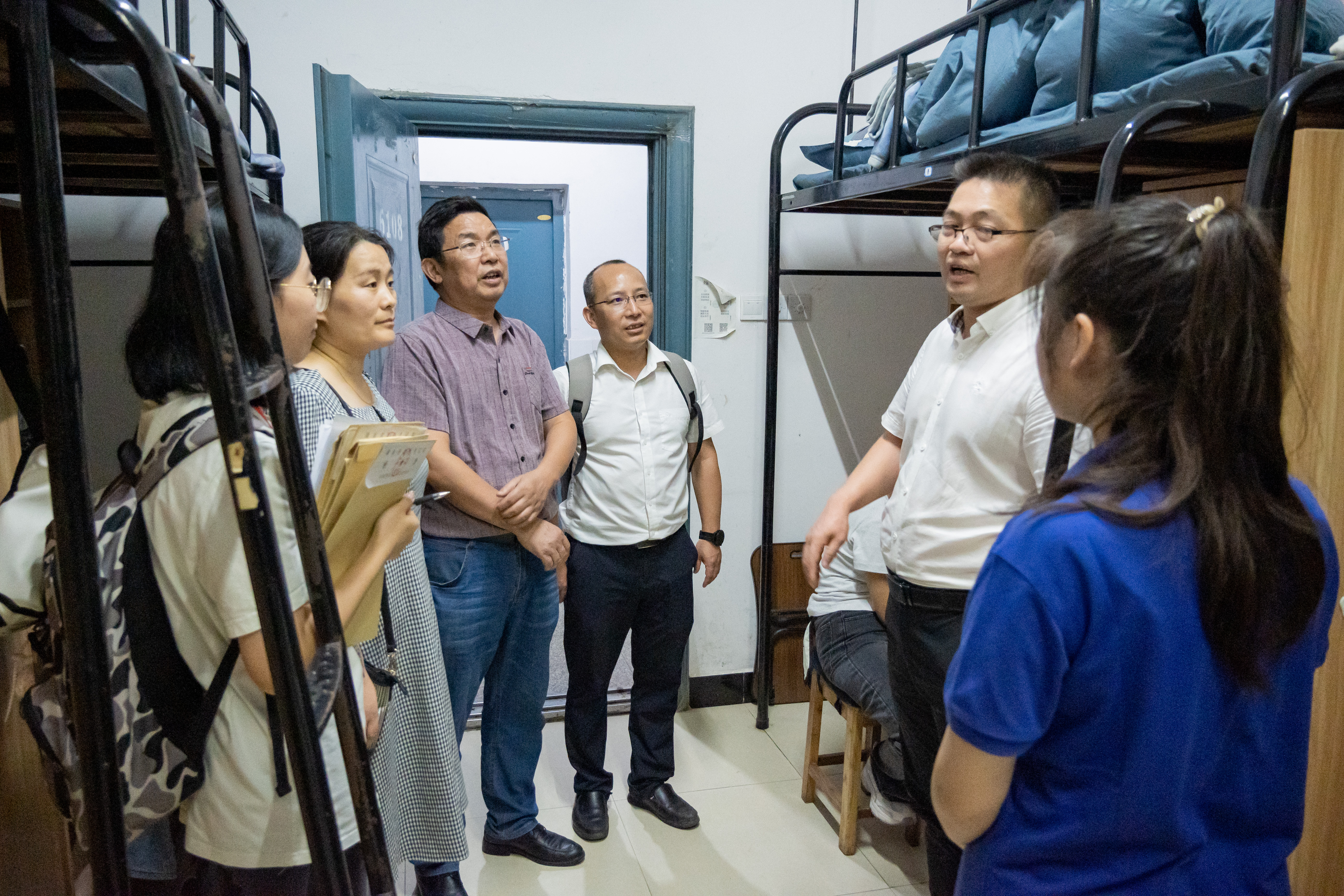 随后,徐粤宇一行走访了新生宿舍,亲切地与新生“拉家常”,了解新生的住宿和生活情况,关切地询问“饮食和气候是否习惯?”“有什么困难及时告知老师”。学院党委书记黄望军希望同学们珍惜大学时光,不负青春年华,锤炼品格、增长才干,“学好真本领,练好真功夫,争做堪当民族复兴重任的大国工匠。”