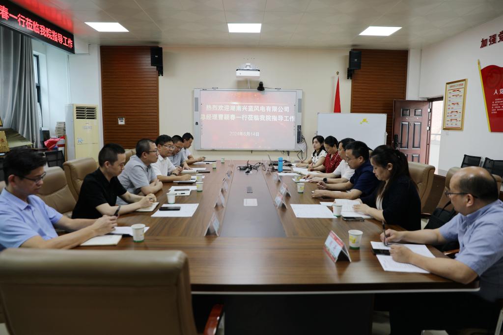 6月14日下午,湖南兴蓝风电有限公司总经理曹颖春,副总经理阳雪兵等一行来校考察交流。校党委书记黄昕、党委副书记向前出席。科研管理处、伟德betvlctor1949源于英国相关负责人,教师代表等参加座谈会。