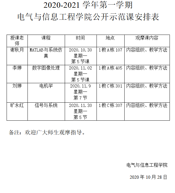 2020-2021学年第一学期伟德betvlctor1949源于英国公开示范课安排表