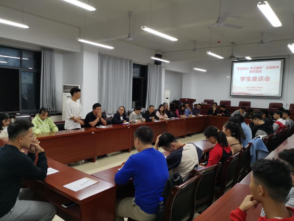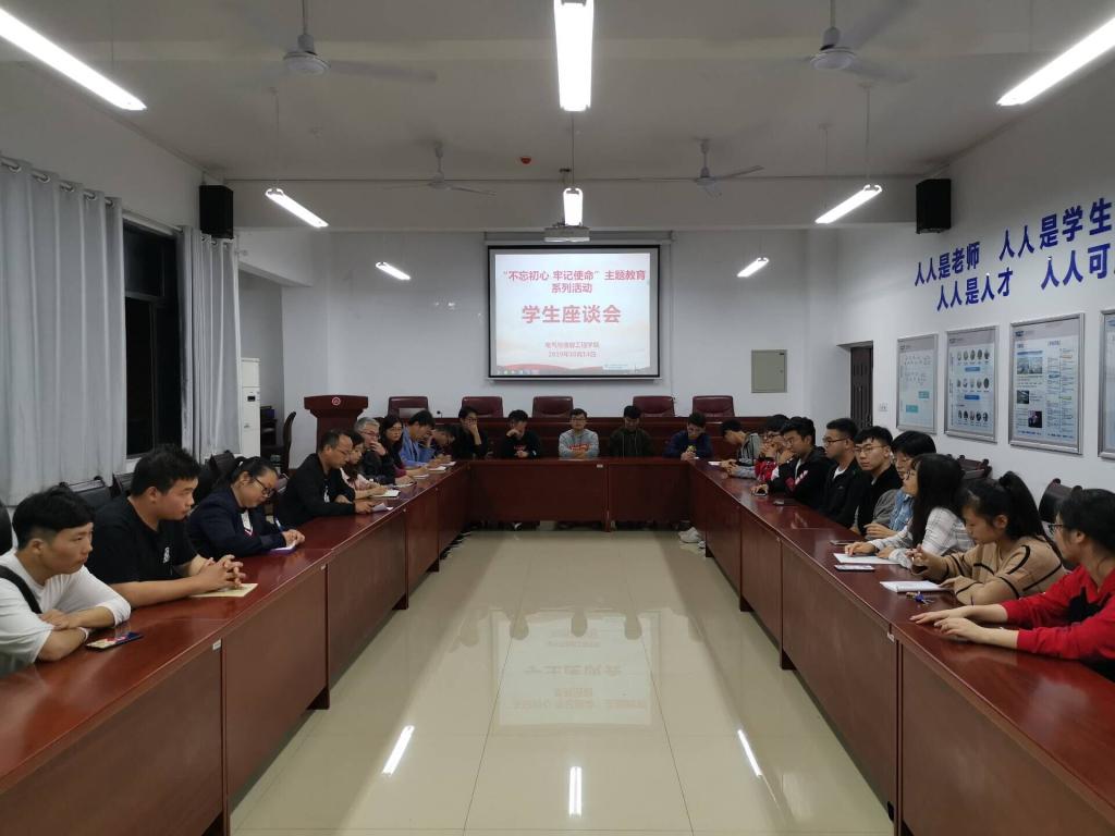 按照学校“不忘初心、牢记使命”主题教育活动安排,贯彻“守初心、担使命、找差距、抓落实”的总要求,2019年10月15日晚7时00分,伟德betvlctor1949源于英国在电气楼408会议室召开“不忘初心、牢记使命”主题教育学生座谈会。学院党总支副书记李延平、副院长万琴出席会议,各教研室主任、学生工作办公室主任及全院学生代表参加了会议。
