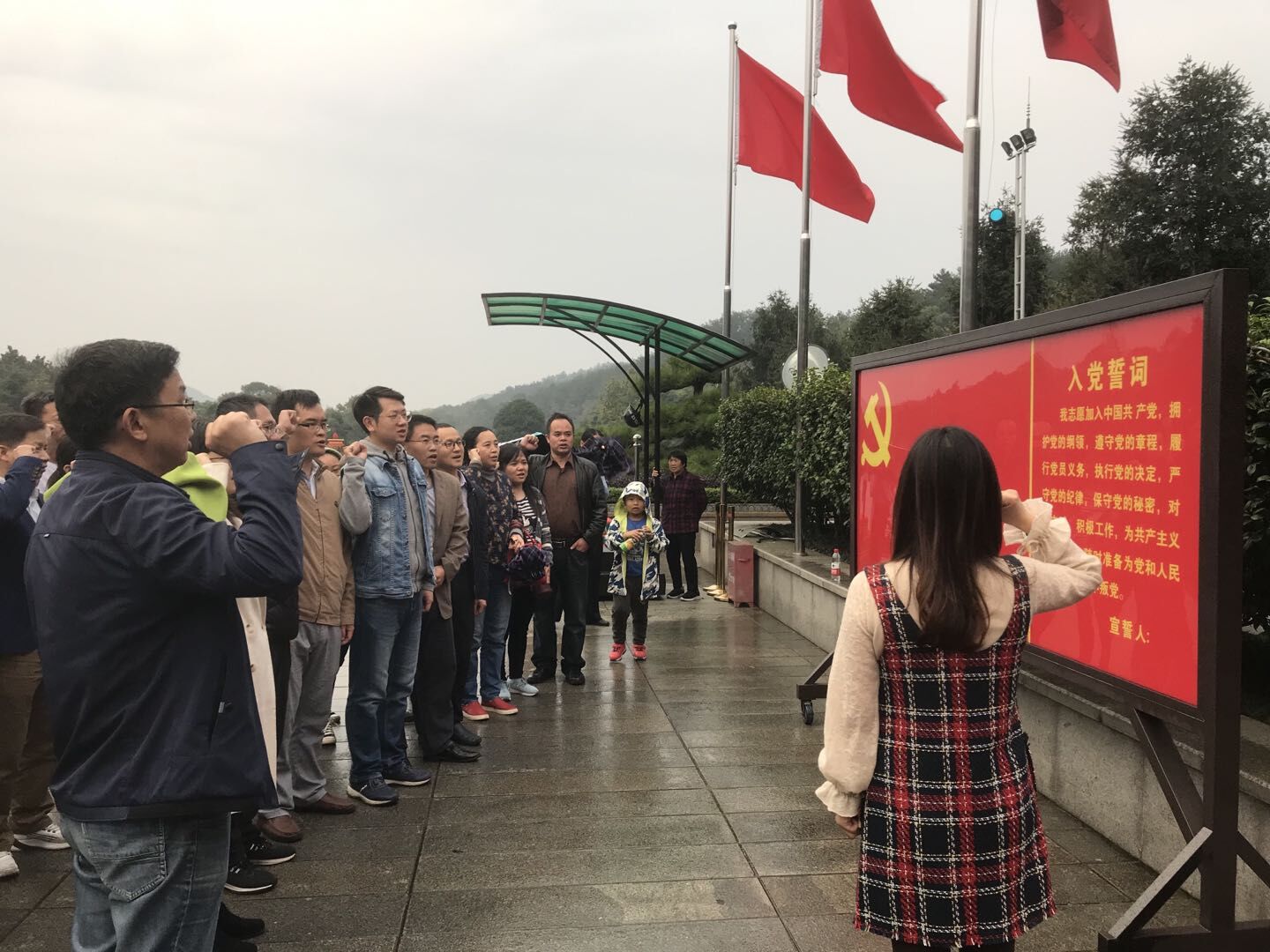 随后,党员来到韶山毛泽东广场,向毛泽东同志铜像三鞠躬,并绕铜像一周,在深情瞻仰中表达了对毛主席的无限怀念和崇敬之情。瞻仰毕,全体党员举起右手,重温入党誓词。