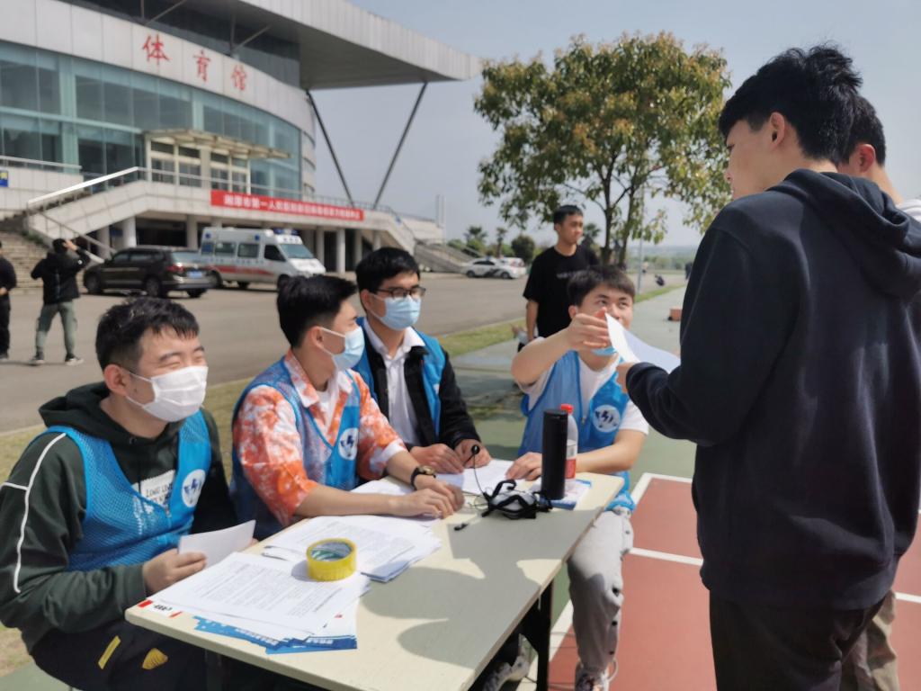 “请同学们戴好口罩,领取并认真阅读知情同意书,有序排队接种”,“班长组织本班同学填写接种登记表”。同学们按照时间安排,陆续到达学校体育馆前的篮球场处,登记姓名、领取知情同意书,佩戴口罩,然后有序进入“方舱接种点”,接种完成后遵照医嘱留观30分钟,确定无异常后再离开。