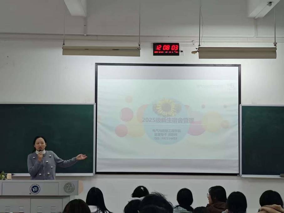 为加强新生宿舍管理,推进文明寝室创建工作,营造安全、整洁、和谐的宿舍环境,10月21日,学院在教学楼开展2025级新生宿舍管理宣讲会。宣讲会上,宿管专干洪思玮围绕“2025级新生宿舍管理”主题,从宿舍卫生要求,规章制度、安全管理等方面进行了详细讲解。她强调,宿舍是同学们大学生活的重要场所,良好的宿舍环境对学习和生活至关重要。随后,洪思玮公布了近期校级优寝名单,对这些寝室在卫生、纪律等方面的优秀表现提出表扬...